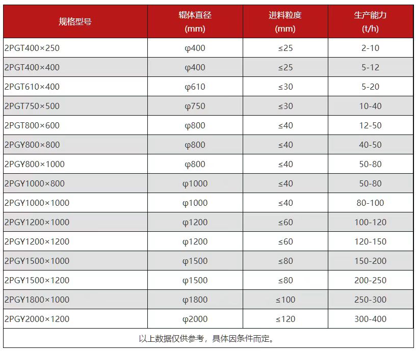 面對如此優勢的碳素對輥破碎機,很多客戶想到的是購買,那么在購買之前,對輥破碎機都有哪些型號,規格參數、生產能力又有什么區別: